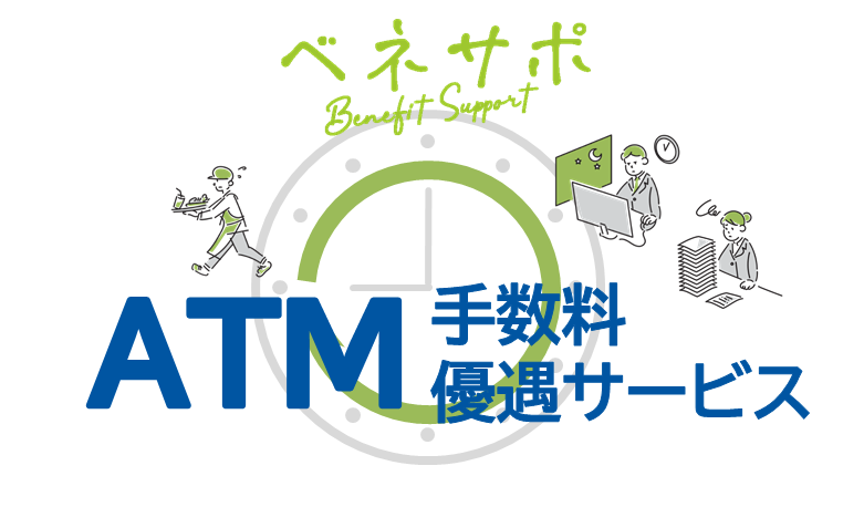 ベネサポ導入企業のうち給振元請契約が当行且つ、従業員さまの給与受取口座も当行の場合、もれなくATM手数料が自動で優遇されます。